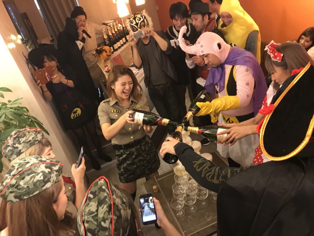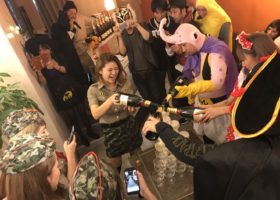 2017年10月21日/第4回Honey Beeスペシャルイベント♪ハロウィンパーティーを開催。定員人数30名様で行われました立食パーティースタイルです。皆仮装をして行われたハロウィンパーティーでは二時間制のシステムになっており、呑み放題プラン(生ビール、樽ハイサワー、焼酎、カクテル、ハイボール、ワイングラスetc…)やビュッフェスタイルで食事か楽しめます。さらにDJミュージックをとりいれた雰囲気も最高なパーティーです。Honey Beeではこのようにイベントパーティーをとりいれたお店になってますのでとても楽しめます。また新たな出会いもあり色々な方とお知り合いになれるので一人できても楽しめます。