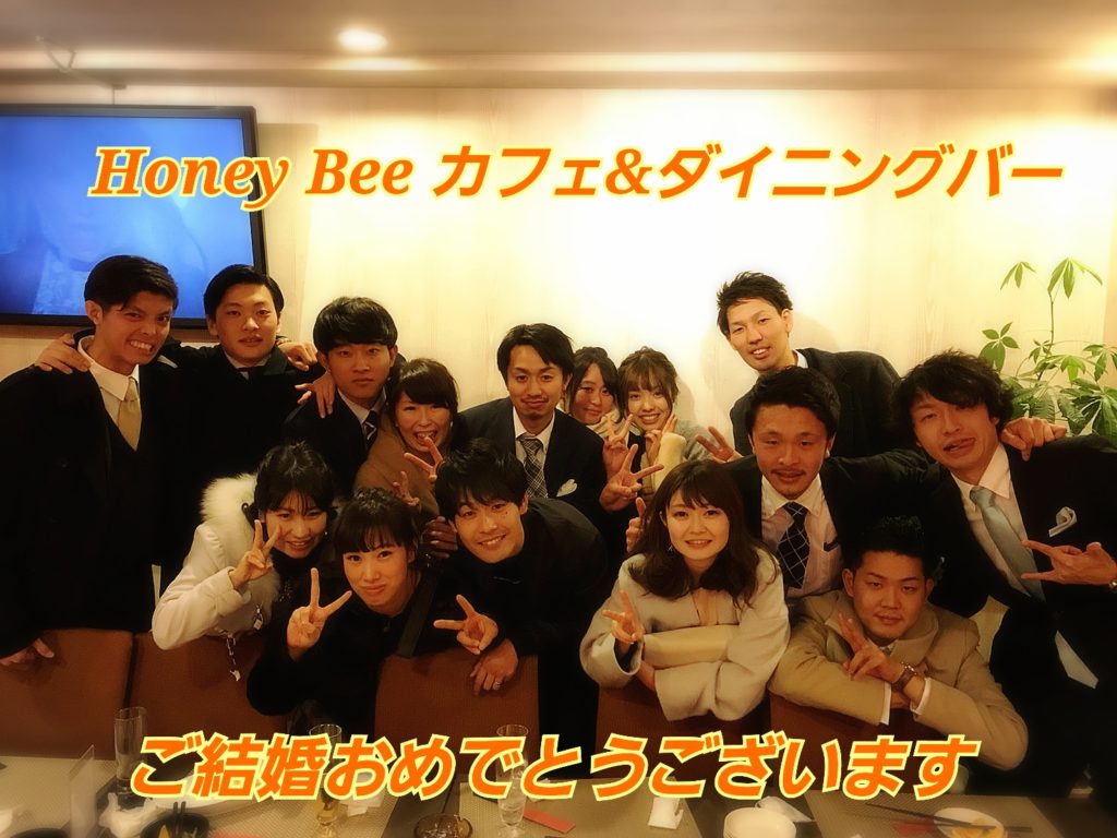 結婚式といえば一生に一度の思い出に残したい❗二次会、三次会と永遠につづきます。2月中旬飛び込みで電話がなり団体様のご予約!スタッフも大慌て(笑)たまたま知り合いのお花やさんでサプライズ花束💐喜んでもらえて嬉しかったです。いつまでもお幸せにHoney Beeでの思い出も一生忘れないでください。
